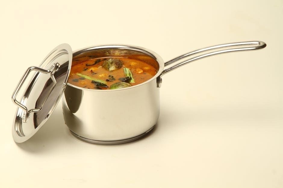 Refer to the instruction manual for recommended cooking times; overcooking can lead to burning․ The PDF provides guidance on appropriate liquid levels for various recipes․
