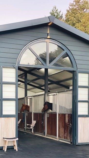 Heavy-duty sliding barn door hardware kits, capable of handling substantial weight (like 450 lbs capacity systems), are essential. Durability is paramount, resisting corrosion from animal waste and weathering, maintaining functionality and safety within the pole barn structure.