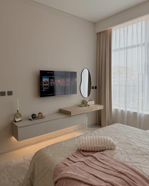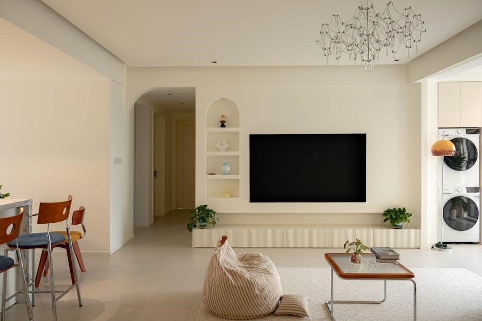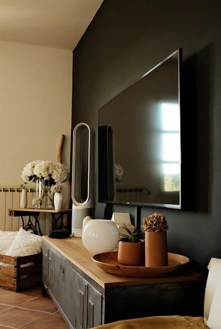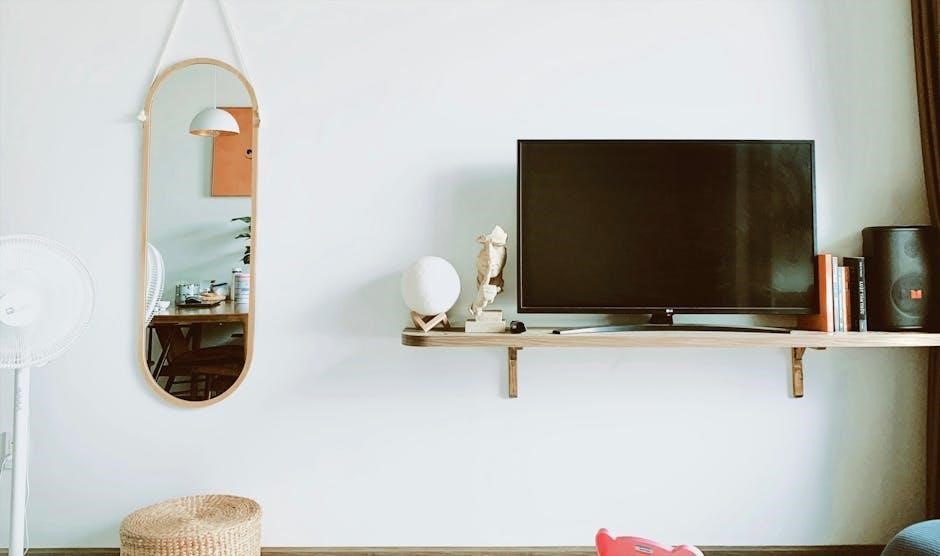 Many TV wall mount instructions PDF guides highlight the visual appeal of a mounted television, offering a minimalist and modern look. Wall mounting transforms the TV into a focal point, resembling artwork. This contrasts with the often-cluttered appearance of traditional TV stands, enhancing overall room décor and style.